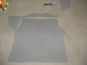 I then cut the top of the shirt off. Cut the seams of the shirt creating 2 pieces (front and back.)