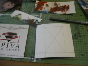On the backside of the drawing or painting make lines for the mat (for my magnet – I did 1″ for top and bottom and 1/2″ for sides.)