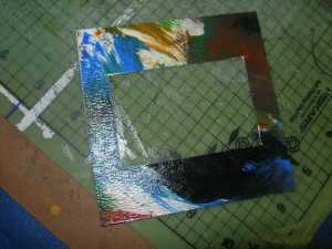 Cut out the center of the square with an Exacto Knife and metal ruler.