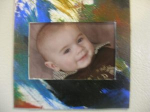 Every year we get cheap, ugly advertisement magnets on our phone books, I never want to throw them away because I always say I’m going to do something with them. This morning I got inspired, I was cleaning and I came across some of the PrincessE’s paintings and decided to stop what I was doing and make Magnet Frames for my fridge. These would also make a great addition to any grandparent’s fridge or a metal filing cabinet at work.
