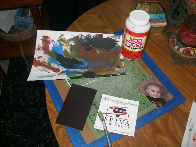 Apply a thin coat of Mod Podge to the outside of the magnet, place “mat” on the magnet and cover with Mod Podge.