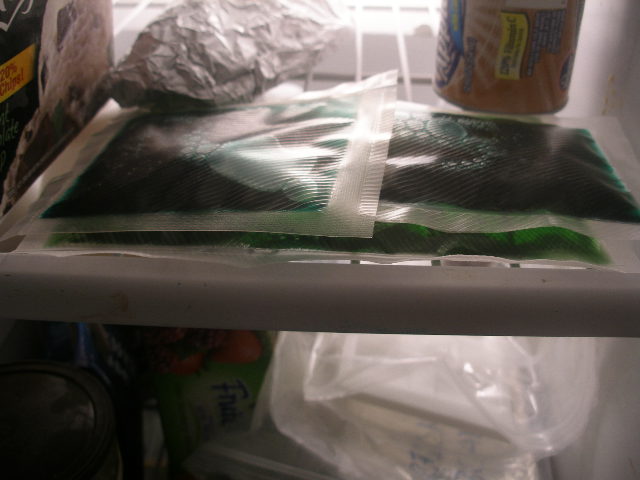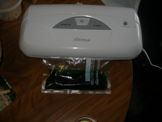 My Seal-a-Meal (isn’t it pretty?)  Sealing the green ice pack.