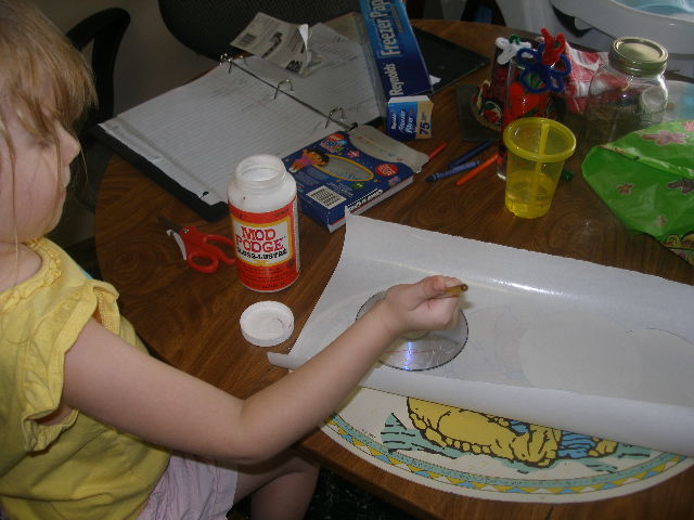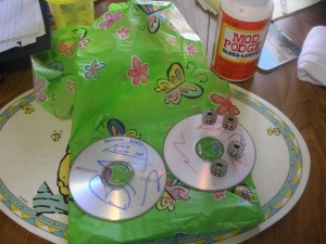 | Supplies: Tissue Paper, CDs, Bobbins, Mod Podge |