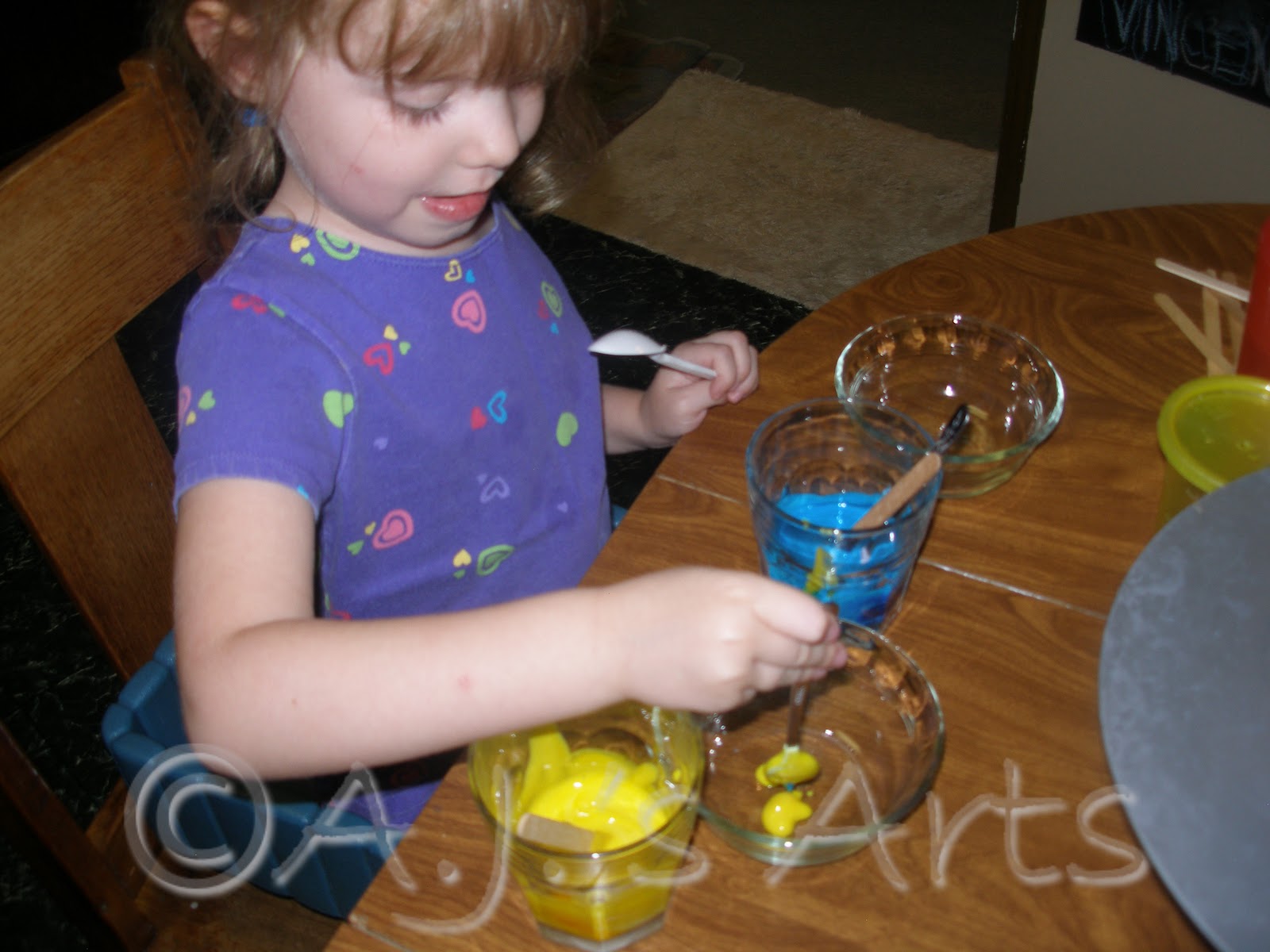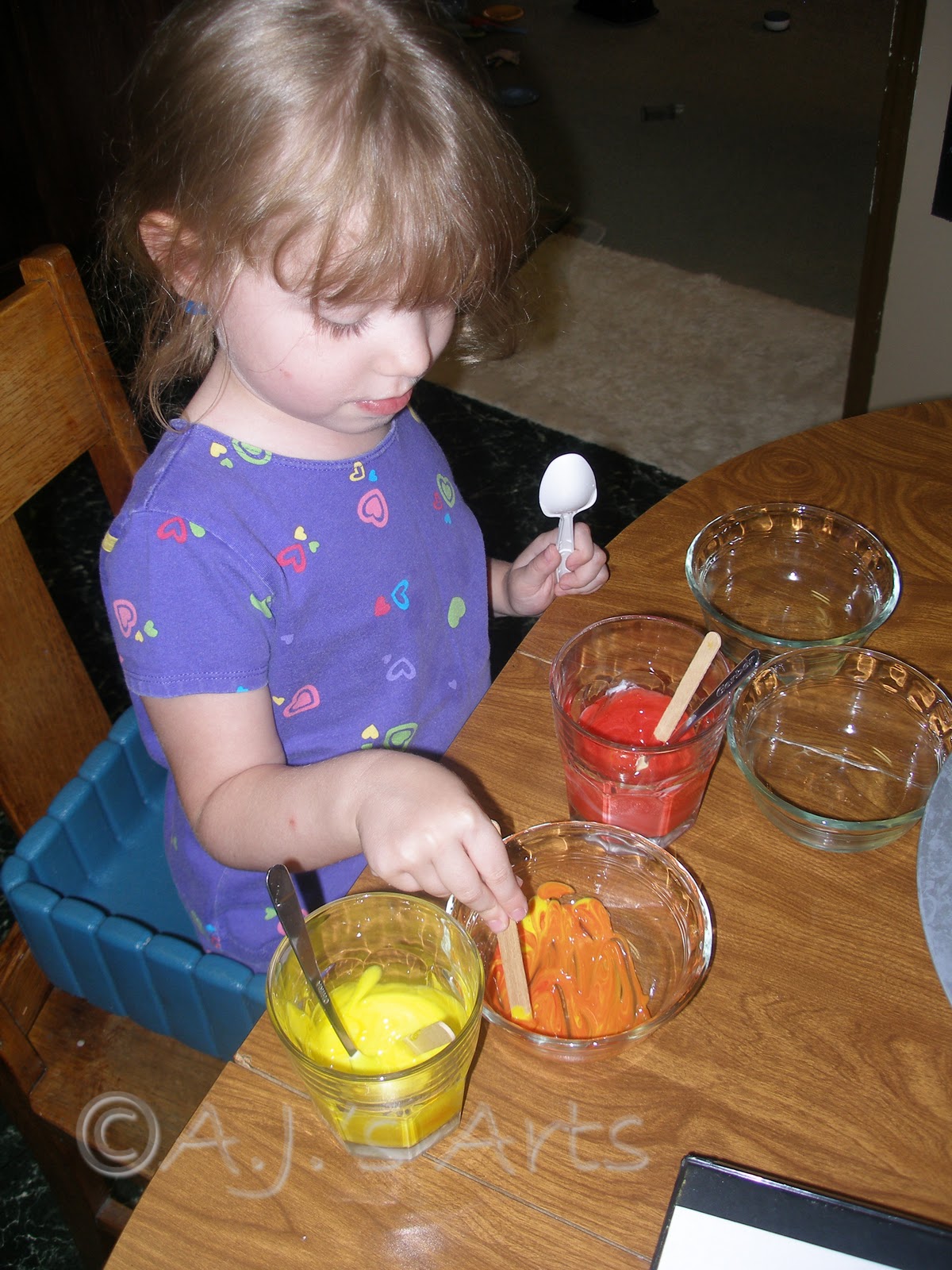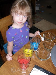 My idea originally was to just to this with water but she wanted yogurt, so it shifted from colored water to colored yogurt.