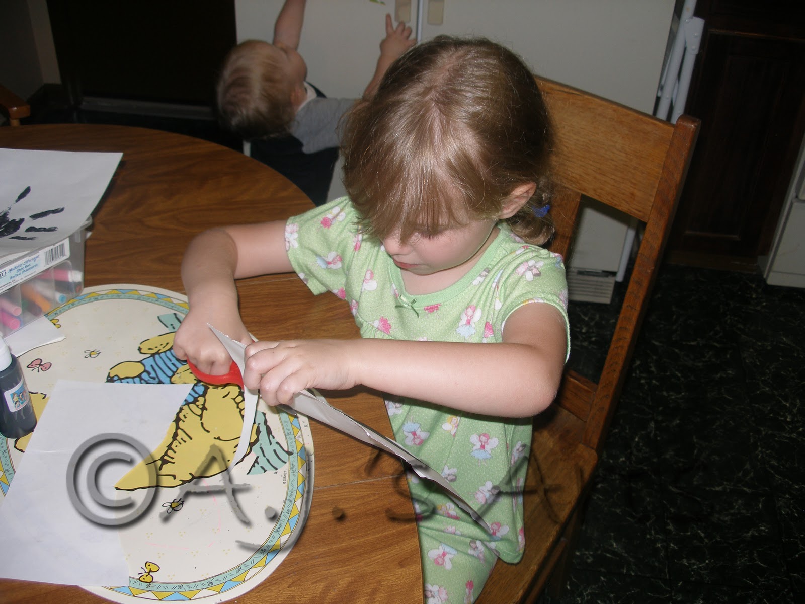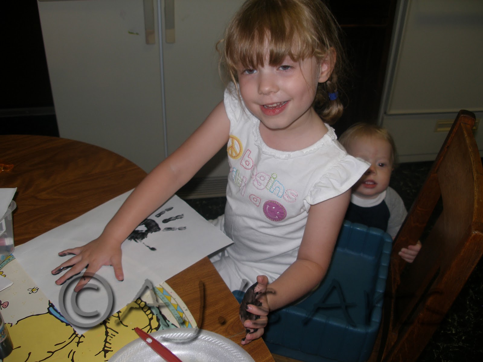 I was flipping through the most recent Oriental Trading Catalog and saw the cutest little hand bats. I thought is would be perfect for the kids (a little messy but still fun!) It would also give my daughter a chance to practice cutting (THUMBS UP!)