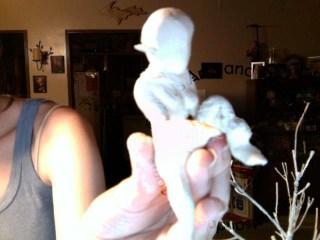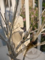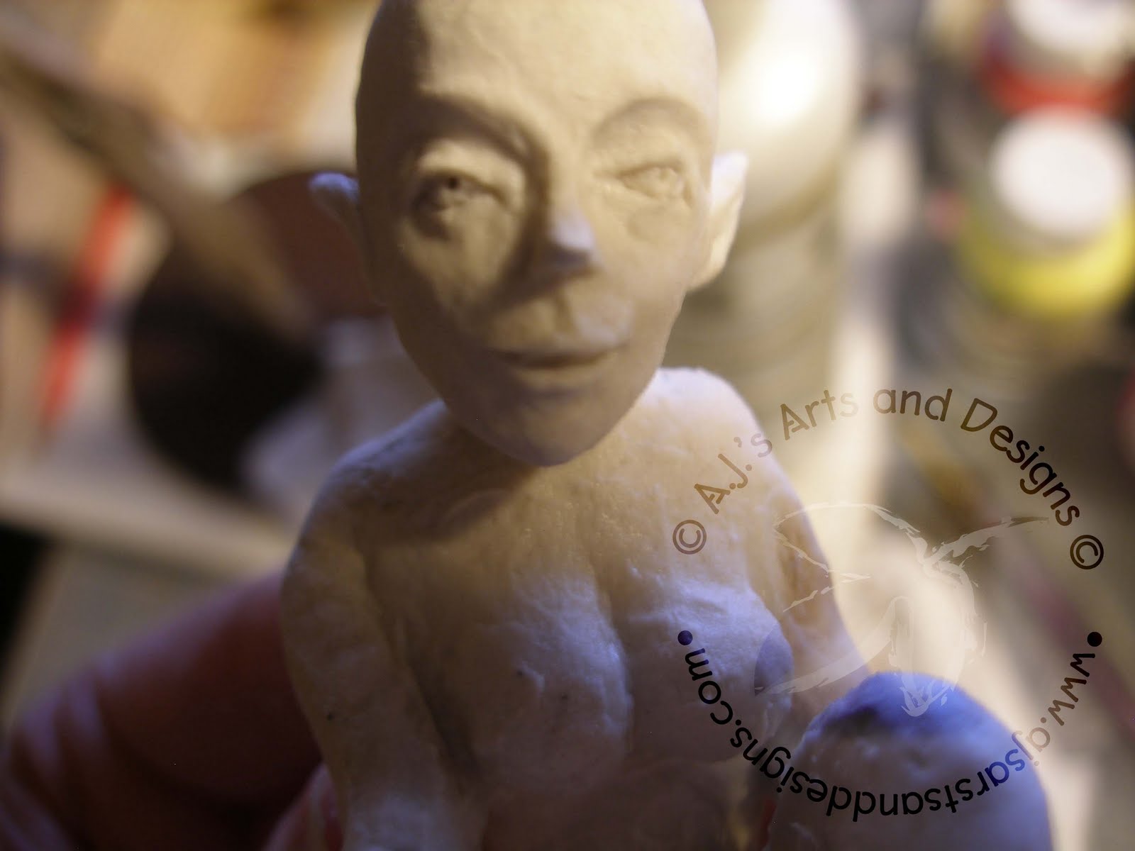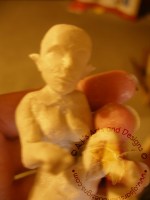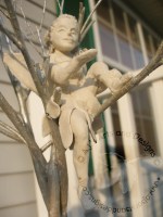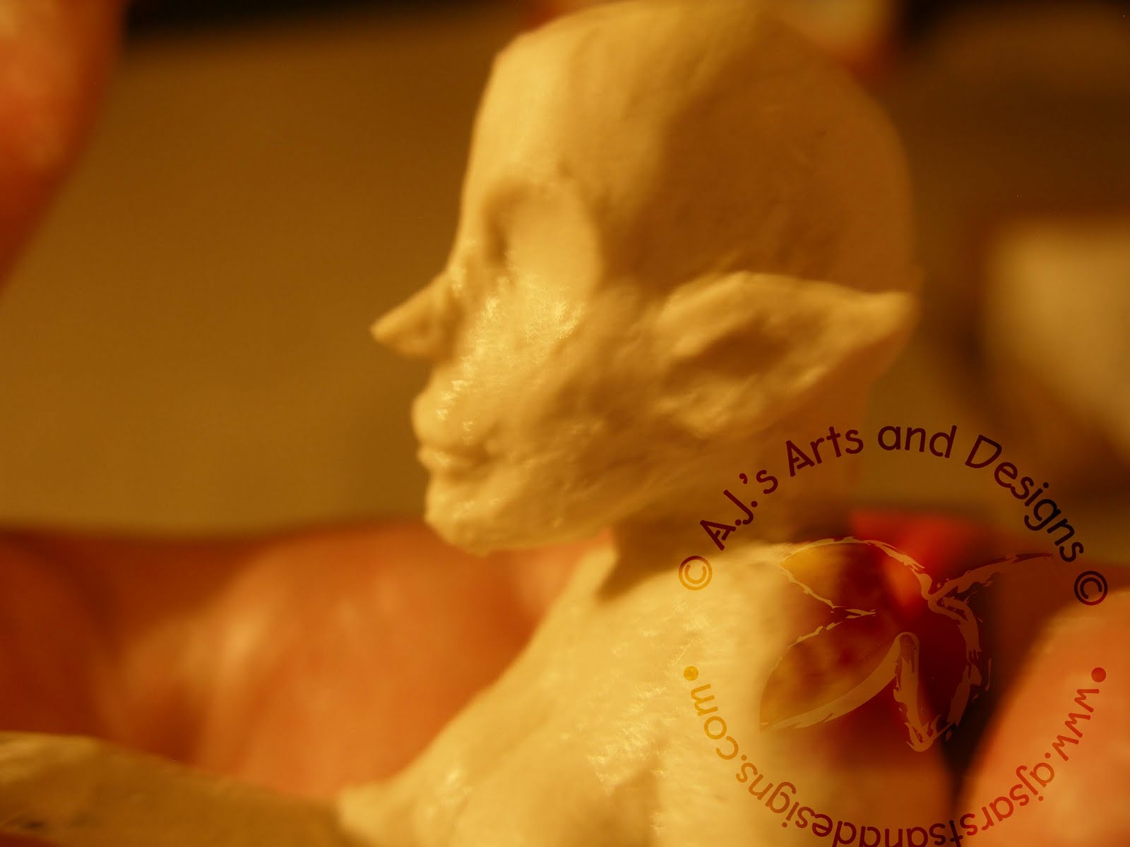 Since this project is for a Design Team, I took the Fairy outside before painting her so I could get some better photos of my progress. This was so I could show the detail of the Fairy. I found the Paperclay very easy to work with. It is very similar to an earthenware clay (without the work). I mentioned earlier that the Paperclay was extremely easy to use even if it was dried. I carved into the hand after it had dried because I did not sculpt detail originally. I tried to paint the detail and it did not look right, so I carved into it with an Exacto knife and curved sculpting tool to form fingers. I then added water to smooth it out and it worked perfectly.
