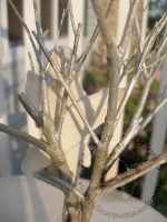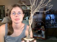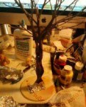 | Tree base glued to a round piece of wood. I at first used E6000 glue, this DID NOT WORK. I ended up hot gluing the tree to the base. |