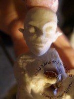 I was very impressed with how well Paperclay takes paint. With some clays the paint is absorbed into the clay itself. The Paperclay lets it sit on top almost like a glaze, but it did not peel off or flake. I used basic Craft Paints to paint the Fairy and Liquitex Iridescent Medium to give the fairy a glow.