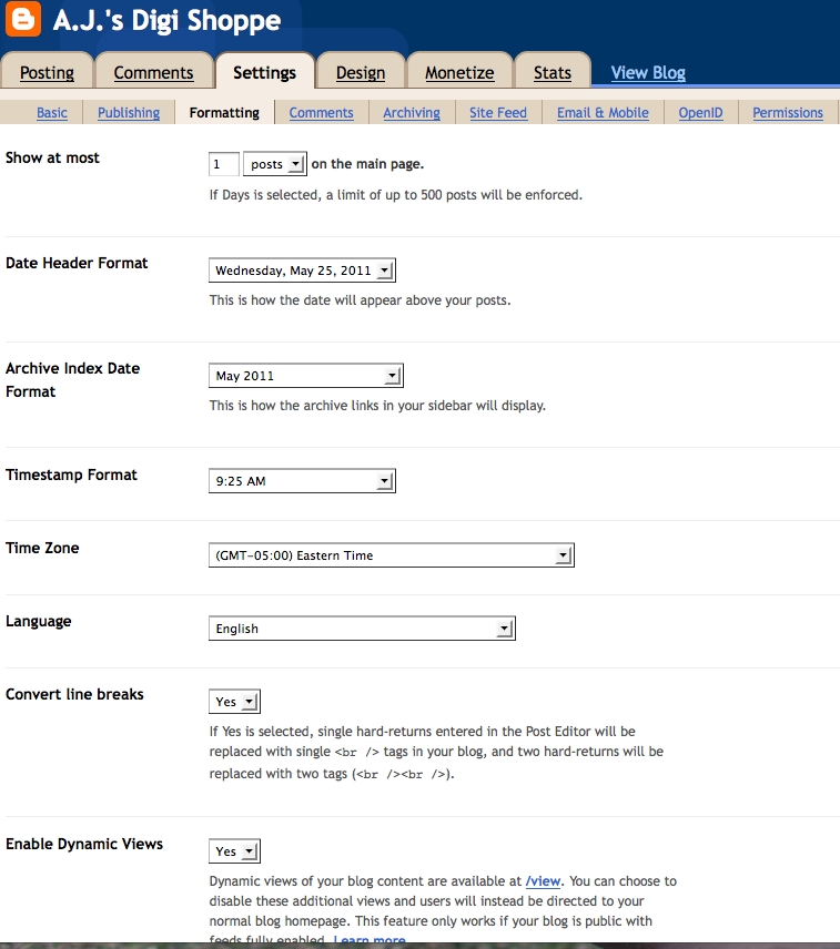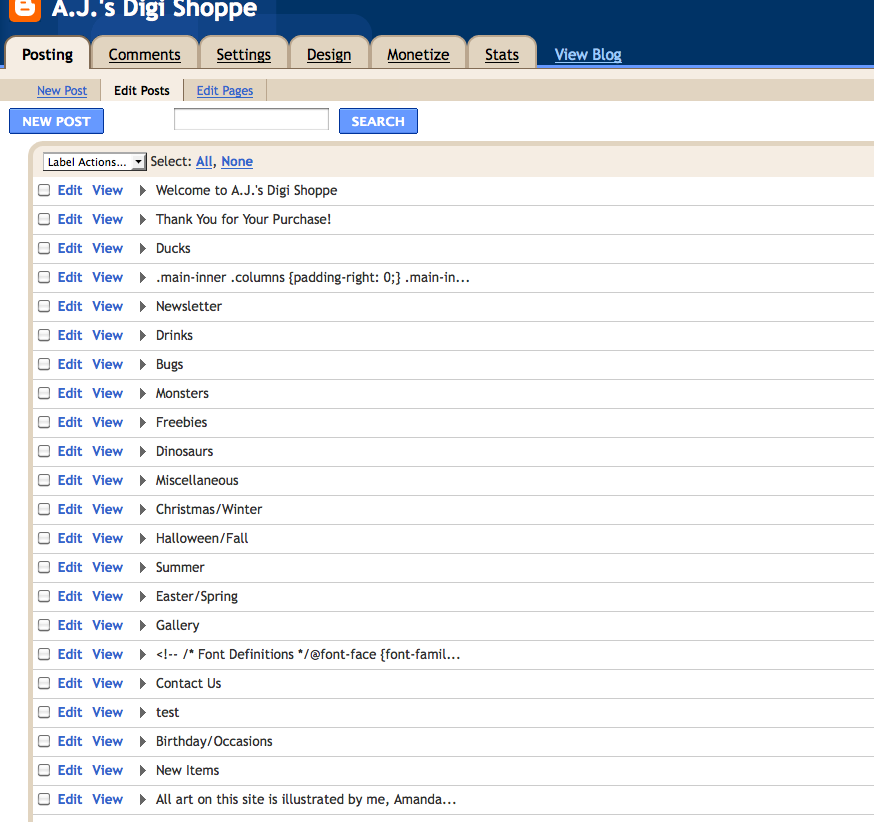 Front Screen shot of A.J.’s Digi Shoppe. I only have one post displaying.