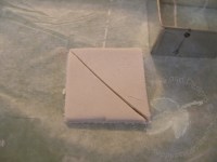 4.) Work the edges of the triangle to a thin edge by squeezing the edges with your fingers. You may need to add water to help it from drying out.