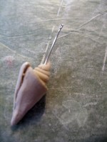 5.) Take the triangle and wrap it into a cone. Add water to the edge and smooth with your favorite sculpting tool.
