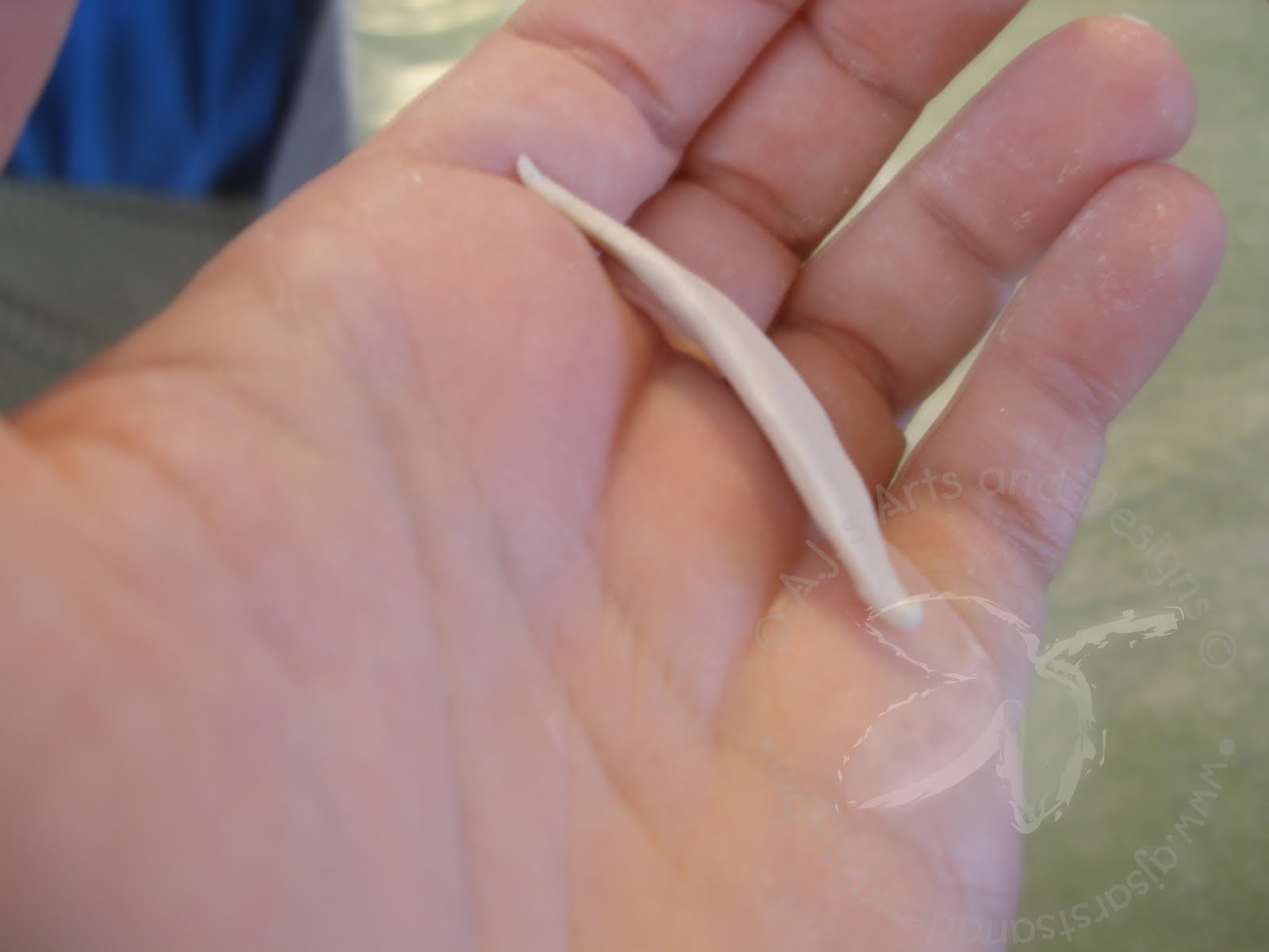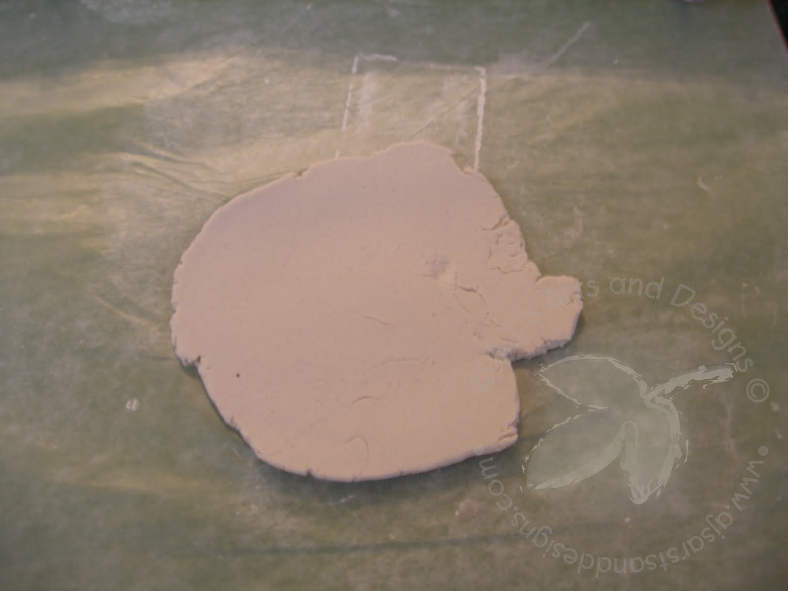 1.) Take some Paperclay and flatten it with the Fondant Roller. You want this a uniform thickness it will be approximately 1/8″ thick.