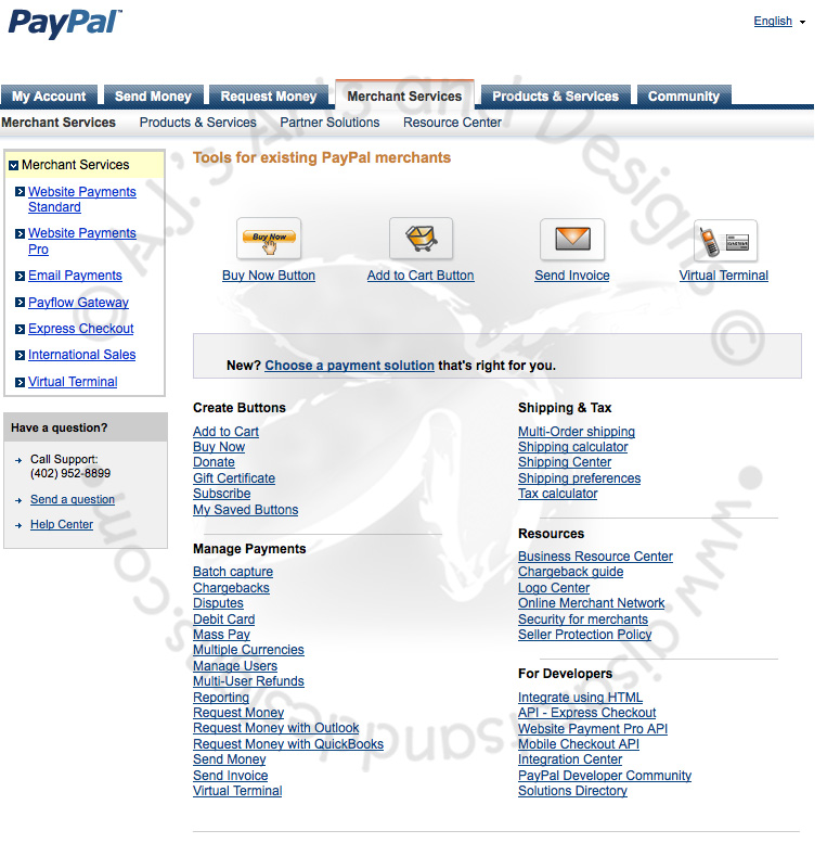 | Go to the Merchant Services of your Paypal Account. The screen should look like this. |