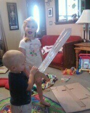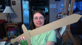 | My with the sword – it however did not pass the Booga test it bent so I reinforced it with craft sticks and Metal Tape. |