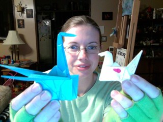 Since I have no intention of writing a how to on an origami crane here is an awesome tutorial.