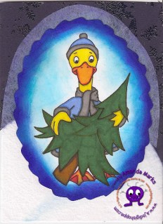 I don't think I have ever seen a ducky christmas card before. He looks very happy, especially with that tree. Cute card! Keep up the great work! Hugs, Francine