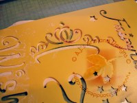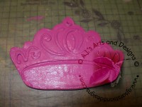 My daughter was invited to a “Princess Themed” Birthday Party a couple of weekends ago.  I always try and do something handmade for the kids.  I honestly don’t know how many people really appreciate this but I know if my child got something like this I would cherish it.  My daughter has a Princess stencil (cheap plastic wall stencil) that had a good size crown on it about 4″ width.  I decided I had to make a gift tag/ornament for my daughter’s friend with my daughter’s help of course.