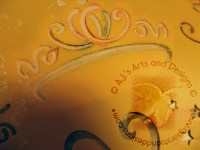 6.  Paint – we used Liquitex Iridescent Medium and Liquitex Soft Body Pink Paint for a base, then used Extreme Glitter to add the appropriate bling for a princess.  I let my daughter write her friend’s name on the front and a To: From: and the date on the back.  Seal with a sealant.  Add ribbon for hanging.
