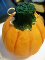 7. Add the stem and vines to the top of the pumpkin (see above for step by step). Let dry for 24 hours.