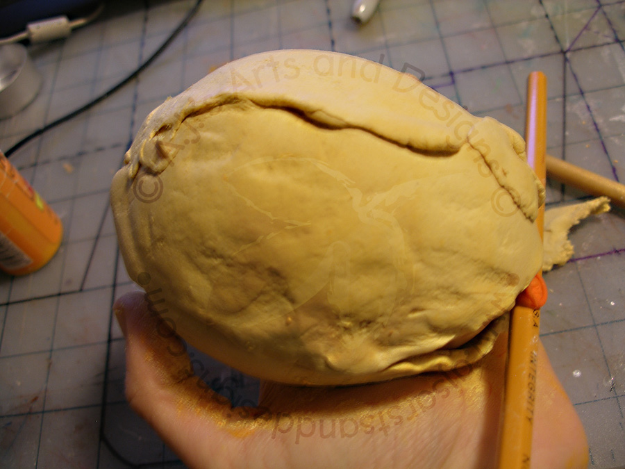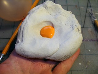 3. Then wrap the clay around the balloon and smooth out the edges.