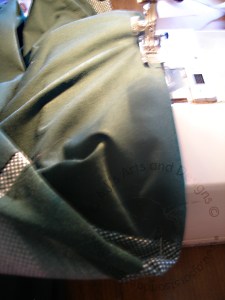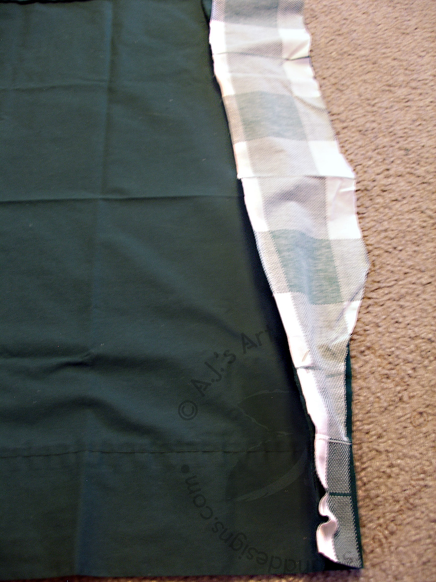 I took the “new pillowcase” cut it in half and then in half again. Putting the two pieces of the new pillowcase together – I left approximately 2″ and the top (which is really the bottom of the pillowcase) and had it go in a triangle to approximately 4″ wide (this was enough with the two pieces to cover my hips – lol.) I pinned everything back together as described above.