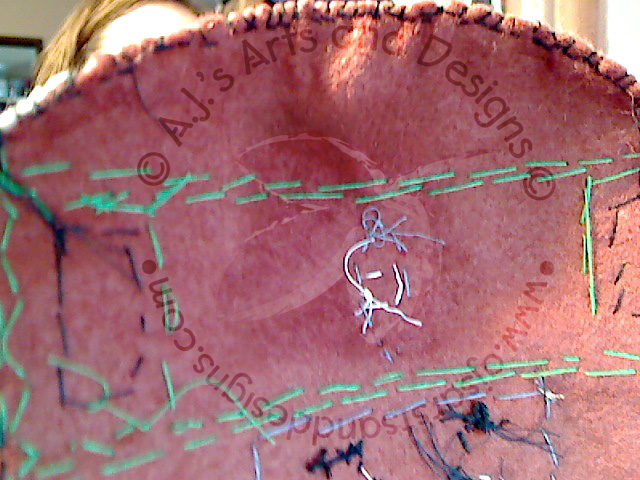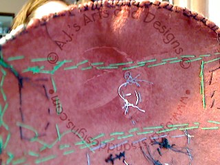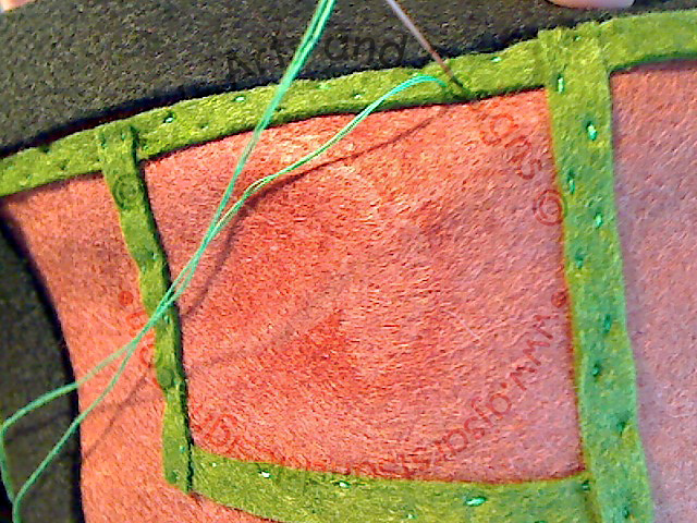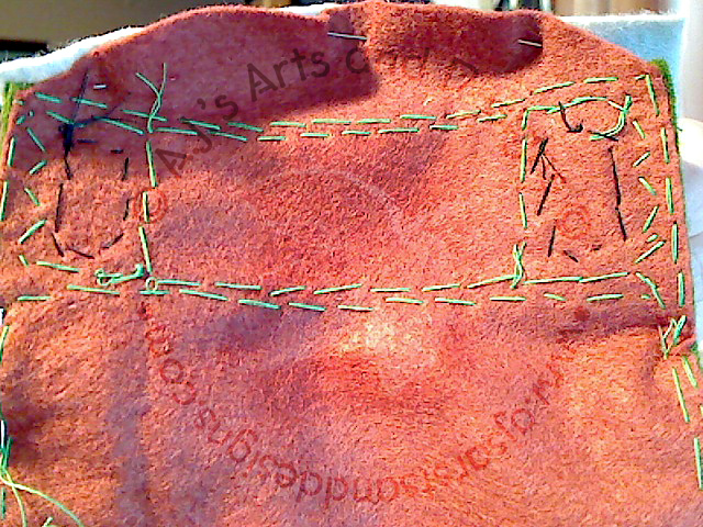 3. Once the pieces are glued, sew the recently glued pieces to the base. This will help keep the smaller pieces attached to the base. The process is tedious but well worth it in the end.