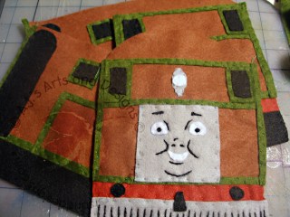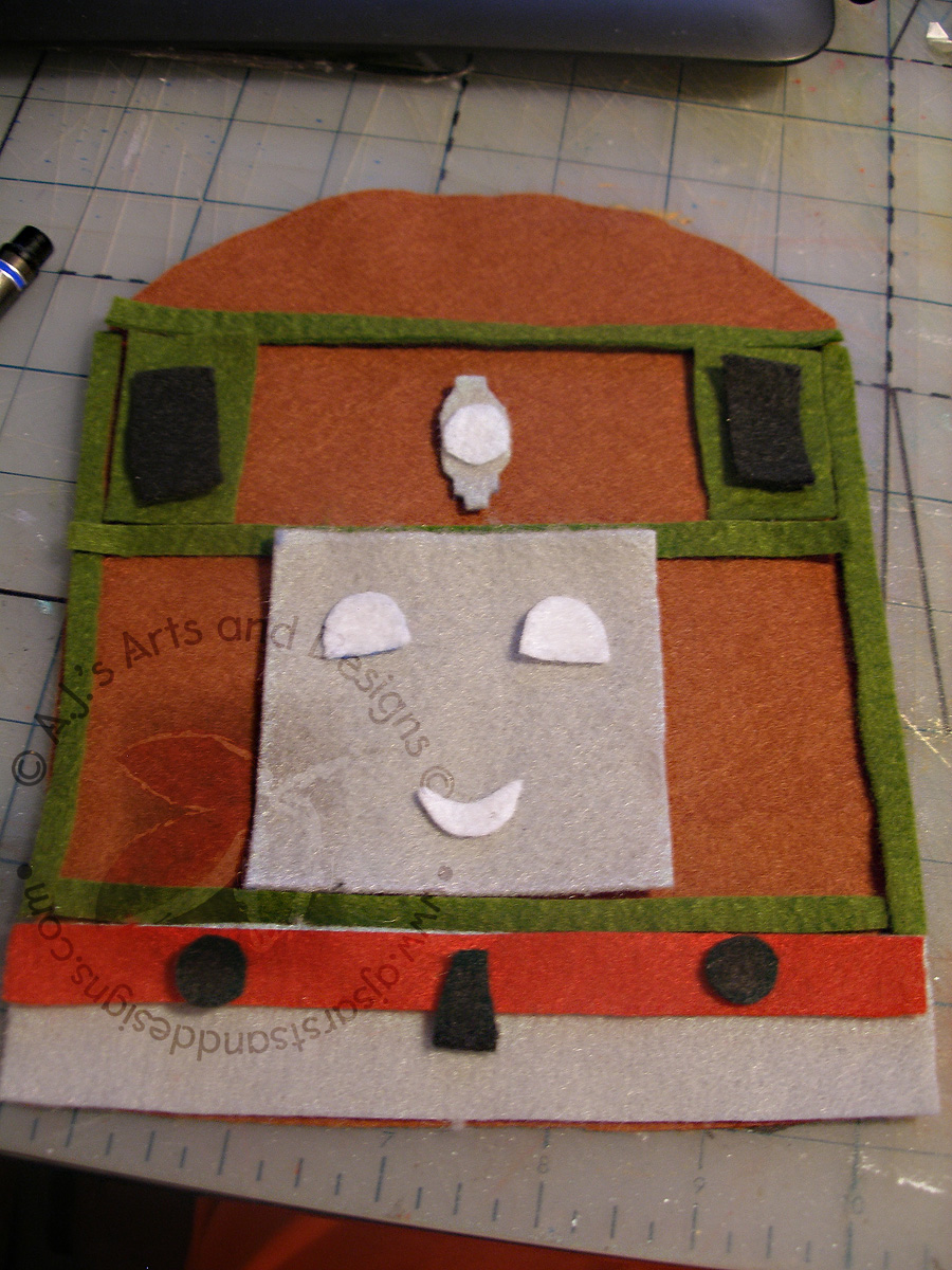 The Toby Train has been a bigger hit than I ever expected. When making him I did make a pattern so I could share it with everyone. I did go back and forth on it debating if I should make the pattern complete or if I should only do it half way because of copyright and trademarks. I decided that since I was not going to profit from this that I would do the full version. These items are pretty expensive and I honestly don’t even know if “plush” Thomas toys exist. I drew this pattern freehanded and used Photoshop to create the actual pattern. I used felt because that is what I had in hindsight I wish I had used fleece instead of felt to make a softer toy because this toy has not left Booga’s side.