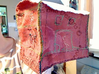 5. Once everything is reinforced with sewing. Pin roof to side A, A1, B and B1 – right sides together. I used several needles on the curved section of the roof. Once the roof is pinned together pin the sides together. Pin the Bottom together.