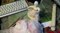 I started with a Wire Armature that I wrapped with tinfoil. It was also critical that she stand by herself so I constructed the base in that manner. As I show in the video I rolled out the clay to a uniform thickness and started cover the tinfoil with the Paperclay.