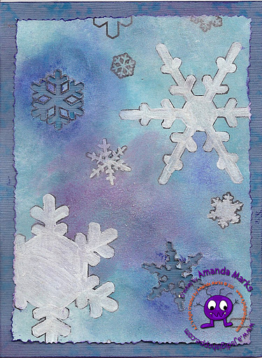 Snow Flake Paper will be released November 1st – Yes this is a tease for it, I have been playing with it for over a month and am still tweaking it.  This particular paper is just black and white snowflakes printed out on white card stock.  I used Tim Holtz Broken China, PLAID Apple Barrel Paints Purple and White and Liquitex Iridescent Medium to give it the shine.  I did put Free Snowflakes on my Shoppe for anyone to download.  I also experimented with making my own stamps with Amazing Mold Putty – here is a You Tube Video on how I did it: