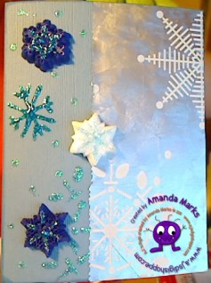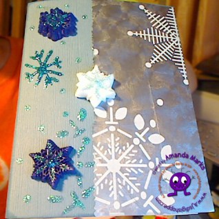 Paper: The card is blank 5 1/2″ x 4″ Inspirations: Earth, Wind & Fire – Blue Odyessey and a piece of snowflake wrapping paper.