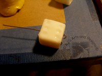 My daughter then informed me that she wanted a stretchy bracelet not a hook bracelet. I had to make the hole bigger to get the elastic too. I scrapped the hole out with a sculpting tool (I believe a bead reamer would have worked – I don’t have one).