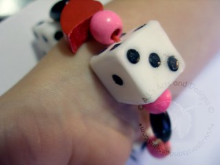 I also didn’t have elastic or other beads so I took an old wooden bead bracelet of my daughters. Took it apart colored the red beads, black and the pink hearts, red with a Bic® Mark it™ pens. I threaded the elastic through the beads and tied it together. My daughter thought it turned out fantastic and loves it so much that she didn’t want to lose it at school.