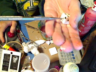 I took a needle tool and poked through the dice, while it was still warm to the touch. I was able to get a Eye Hook through them. I took my Tulip® Slick Black Puffy Paint to do my dots.
