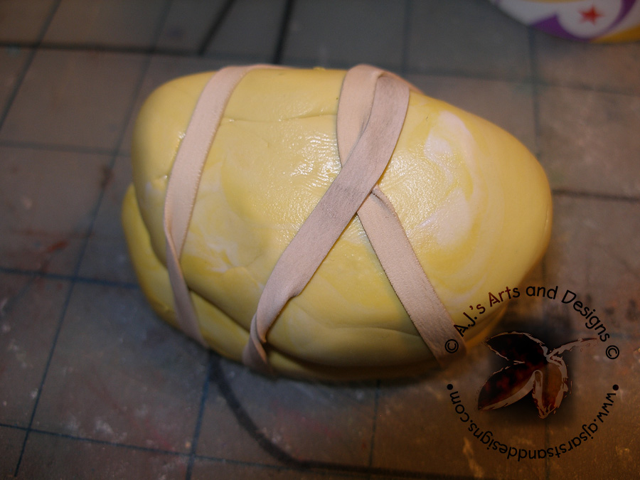 2. Set your mold – I used rubber bands to hold my mold together, place in a paper cup. Mix resin and pour resin into mold.