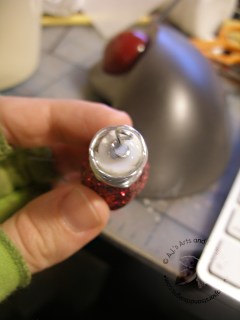 5. Color the top part with Silver Paint Marker and wrap with silver wire. Glue the top part in place so it will not move. Add cord.