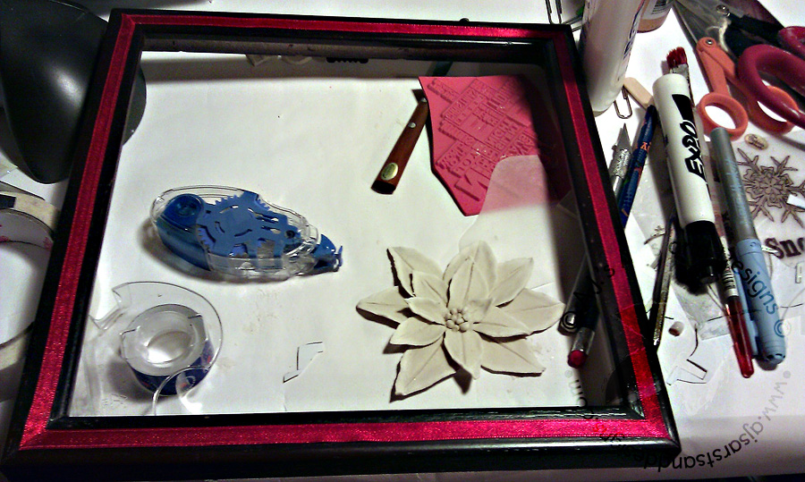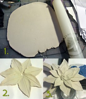 1. Roll out and create petals for the poinsettia (7 for the base – 5 for the 2 layer – 2 for the top). Put the petals together one layer at a time. Add little balls of clay for the center. Allow to dry for 24 hours.