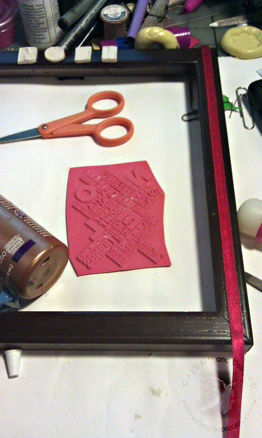 3. Add ribbon with Tacky Glue® to the frame. Cut Acetate to fit inside the frame.