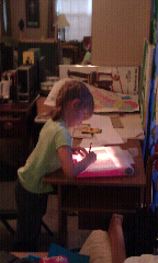 It is the last Friday of 2011 I figured a Christmas roundup is in order. This also a mobile edition because I really wanted to see how this worked. One downfall none of the photos are watermarked until I figure out iwatermark. I also can’t figure out how to add comments on what the photo is (an experiment for another time). First are the teacher’s gift and classroom gifts we made for my daughter’s class. Next is an Etsy order I had – I did the font over the apple. The Borax Ornaments I got the idea from my friend Leslierahye. Next are the coffee mugs my daughter made for my husband and I for Christmas, using PLAID Enamel Paints. Jeff’s Key Ring I made using Clear Casting Resin (Blog Post soon). I repainted my daughter’s Piggie Bank to look like Ham from Toy Story. The finger puppet Toy Story Alien (need to do a pattern for him). Finally my daughter at her desk using her light table she got for Christmas from my Grandma (she loves it!)