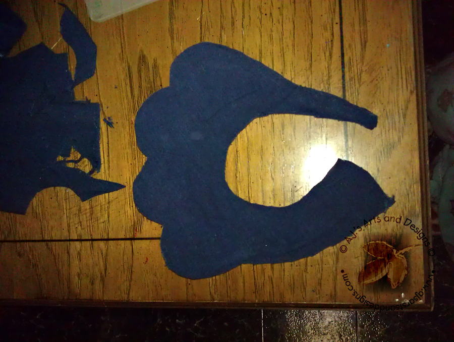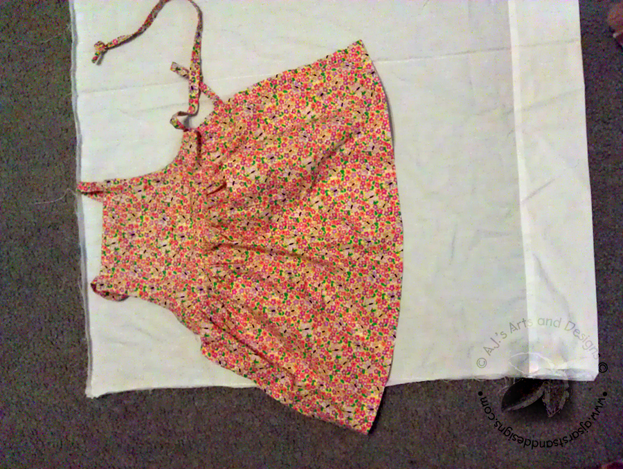 6. Adding ruffles glue 1″ fold 1/2″ glue and repeat the whole length of the arm hole. Attach neck strap, waist band and tie straps to the back with hot glue.
