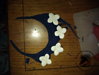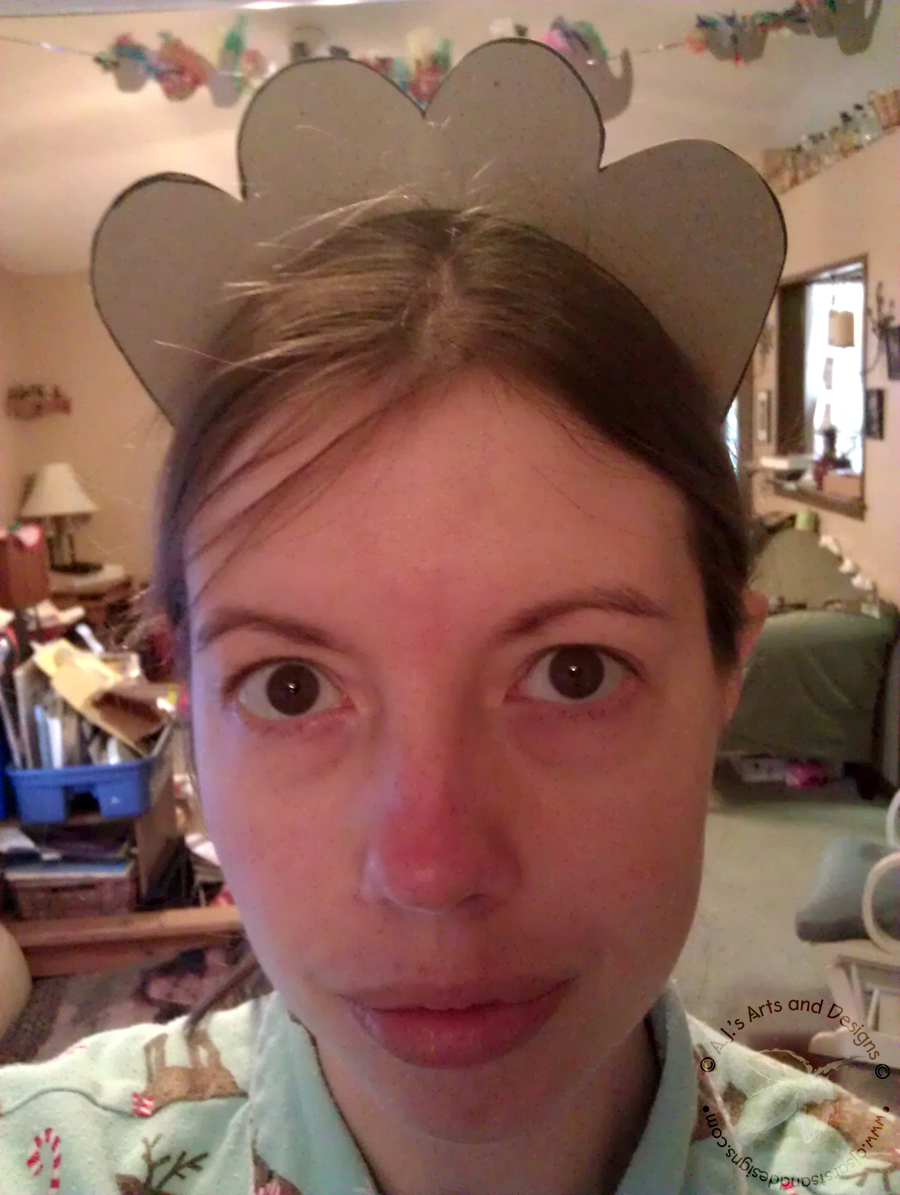 1. Draw the four scallops on the cereal box. Trace the headband along the bottom and cut the bottom so it folds over the headband and hot glue it together.