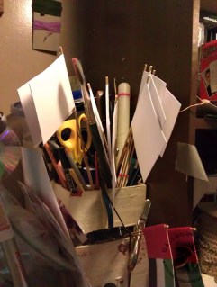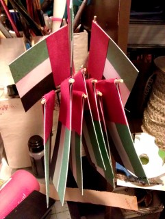I wrapped the strips around the edge of the flag. This worked as a dual purpose: extra strength (just in case there wasn’t enough glue holding the white paper together) and created a finished edge.