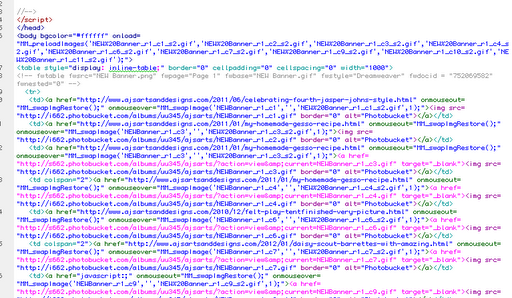 Take the photos you just created and upload them to Photobucket (or what ever hosting site you want) and copy the HTML CODE and paste it into your document. Add what web page you would like your project to go to and add a title.