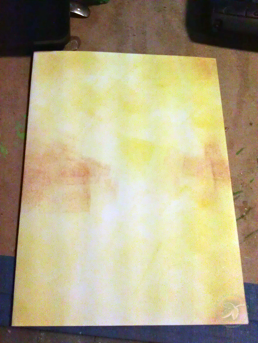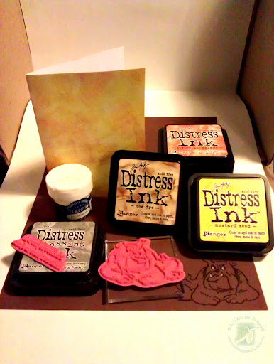 I used a make-up sponge to apply Mustard Seed, Spiced Marmalade, Tea Dye to the background.  Using a spray bottle full of water I sprayed the background dabbed the background with the sponge.