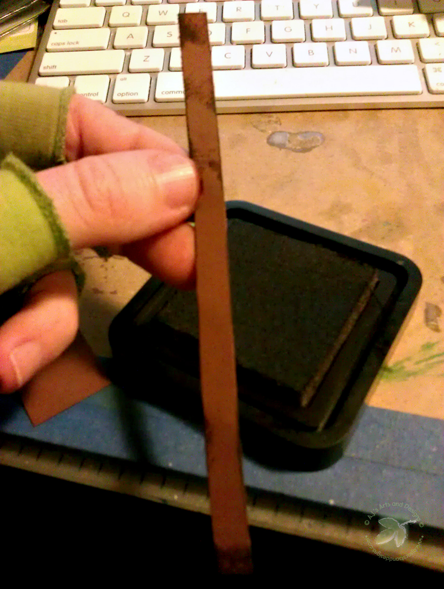 I cut stripes 1/4″ wide and added Walnut Stain to the strips.