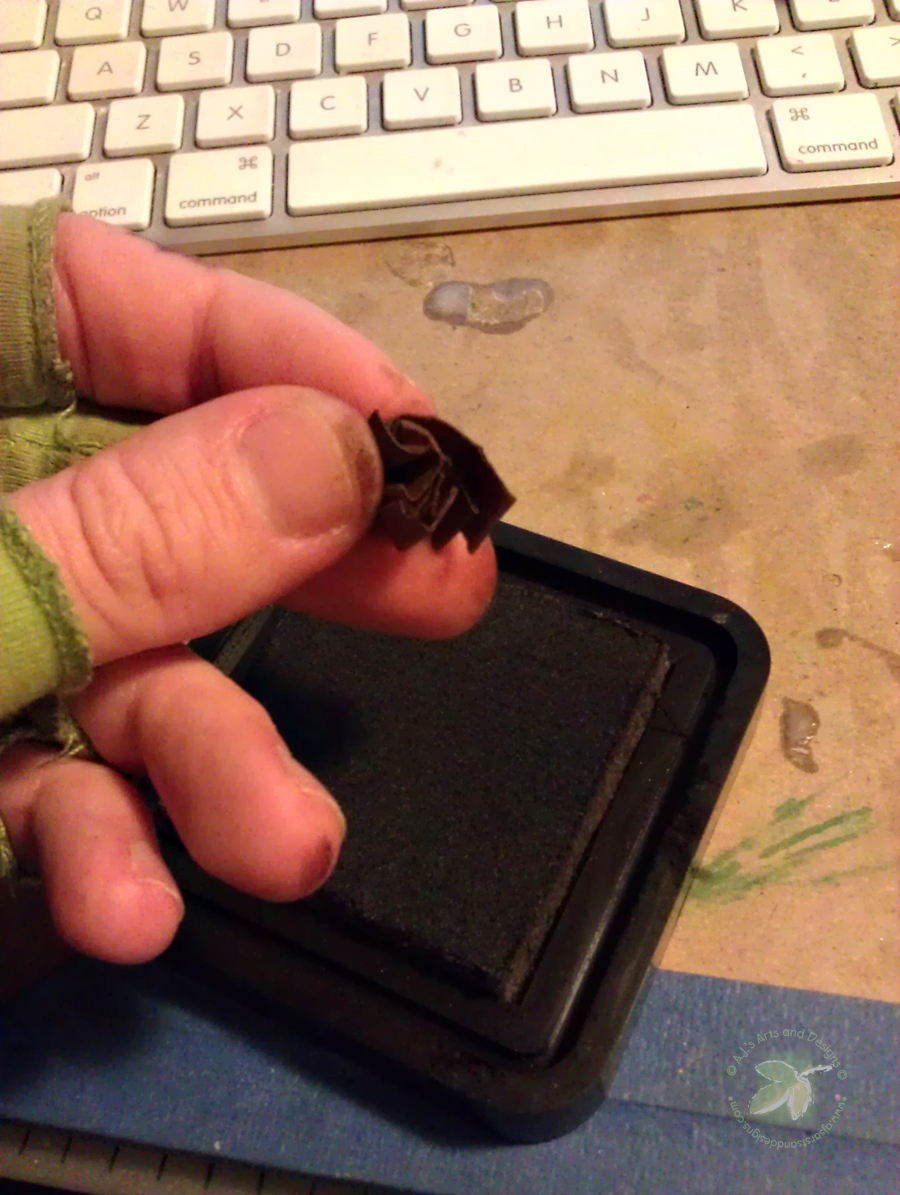I wanted the paper to be wrinkled so I crinkled the paper and stamped it.