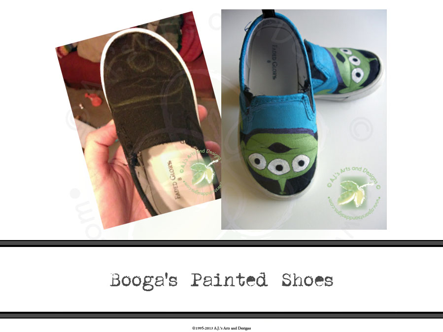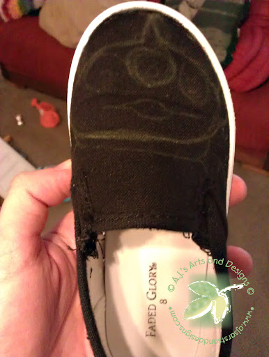 Sketch out the design on the shoes. I had to work one at a time because Booga wanted to wear the other shoe why I worked on one.