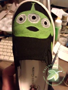 Finished shoes fit for any Toy Story crazed kid.