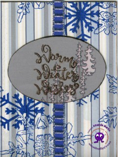 Other: Snow Winter Stickers from Robin’s Nest stamped with Close to My Heart Winter Wonderland Sentiment and Blue and Silver Ribbon