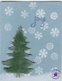 You can never go wrong with snowflakes, in my opinion! 🙂 Very nice texture and dimension with the background cardstock and the tree, great card!